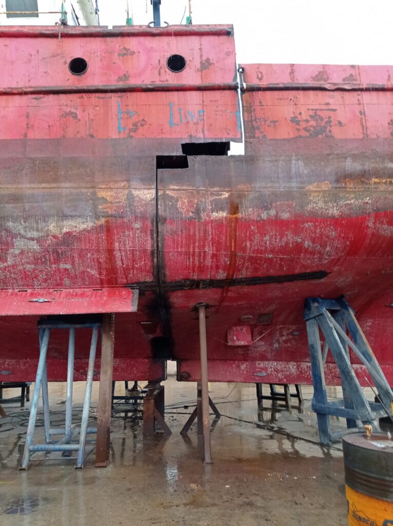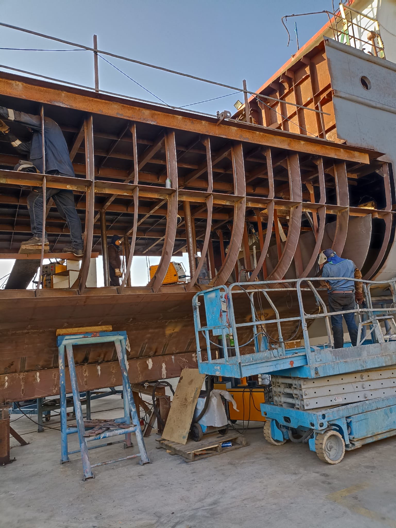 Lengthening of 7 meters length by a block for conversion to tuna fishing. Modification of the stern area to add a dinghy stowage ramp.